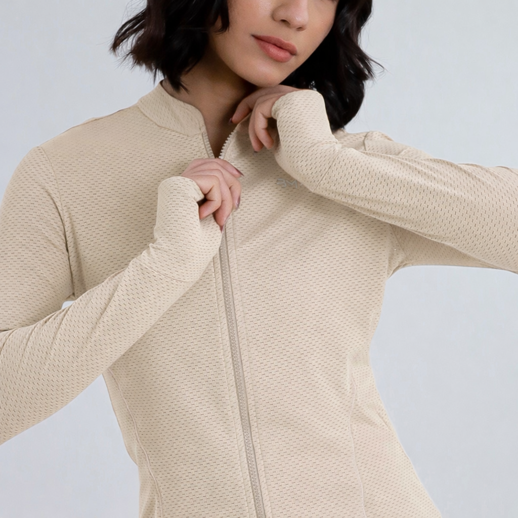 O Casaco Air é clássico! Sua modelagem slim fit com recortes anatômicos estratégicos valorizam a silhueta. Sua manga longa e abertura para o dedão deixam você estilosa em suas atividades físicas. Confecionada em tecido com superfície texturizada que auxilia na respirabilidade.