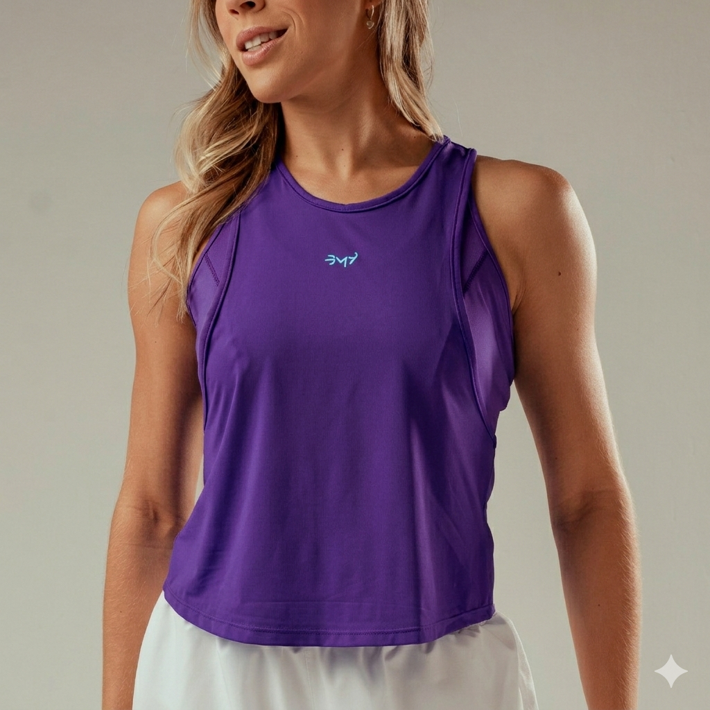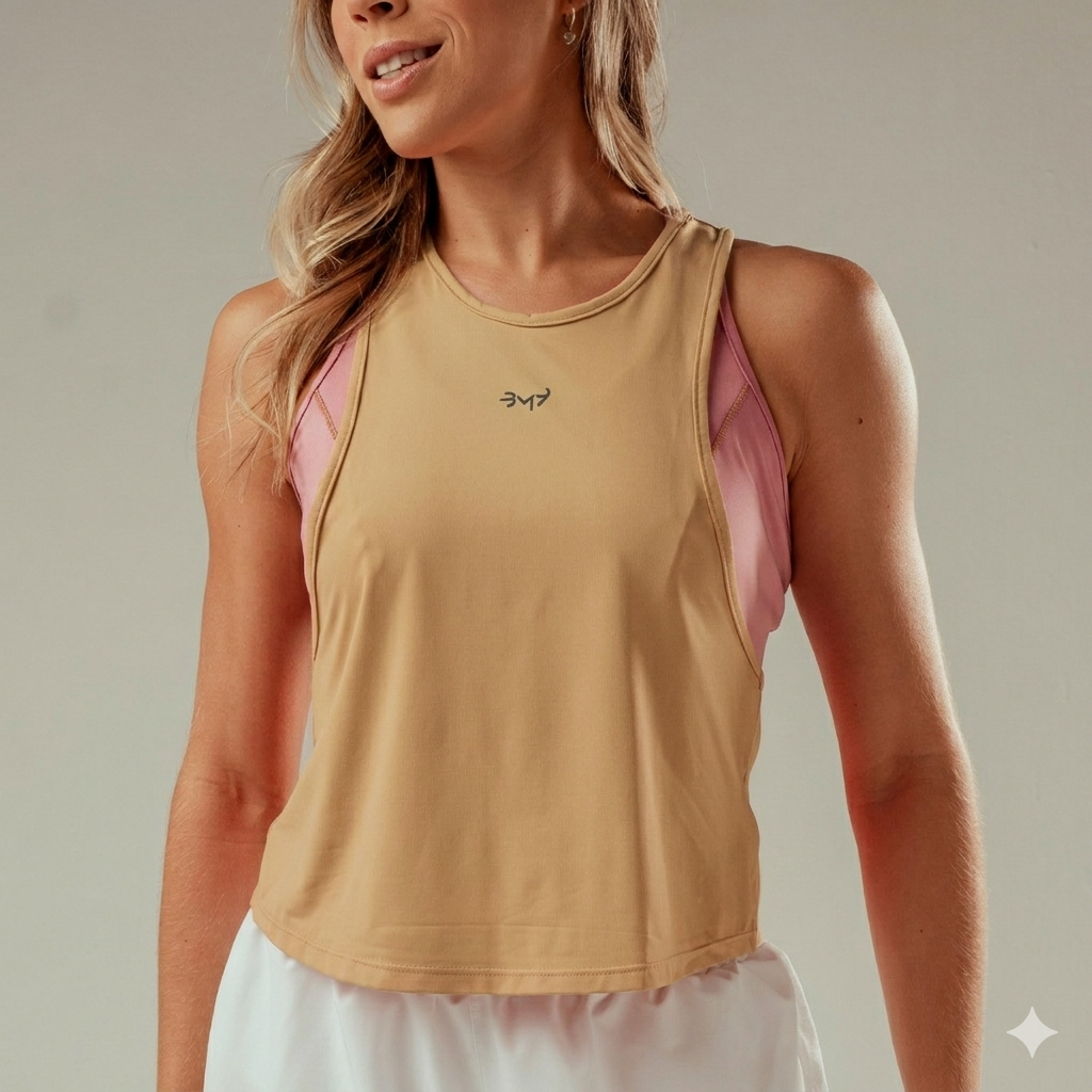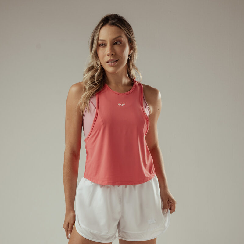 Regata curta em tecido leve, com toque frio e detalhe entrelaçado na costas. Ideal para uso diário, combinando conforto e estilo.