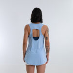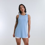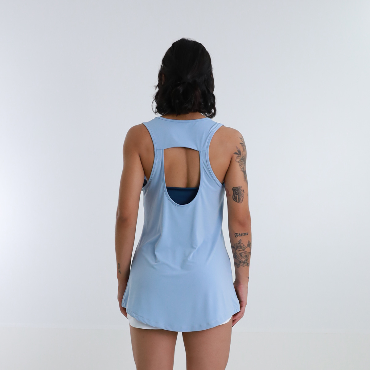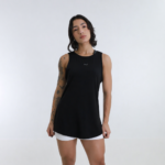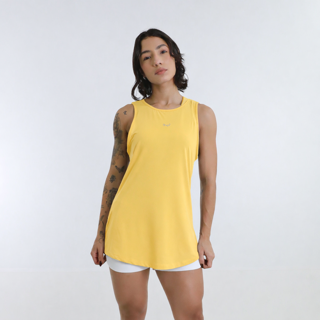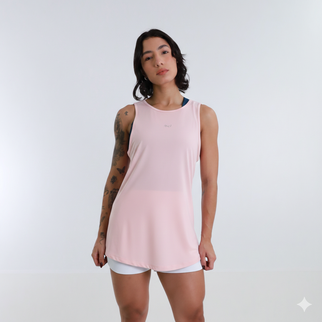 A Regata Move possui modelagem levemente solta ao corpo com cavas alongadas, oferecendo liberdade de movimento e conforto durante os treinos. Confeccionada em tecido leve e respirável.