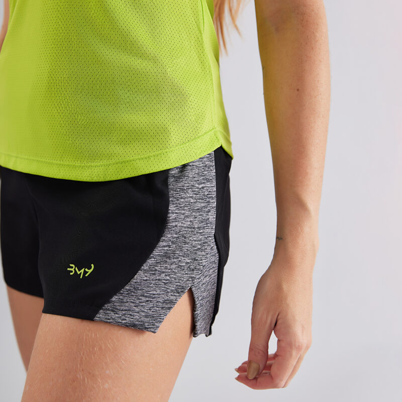 Short solto em tecido microfibra, com detalhe lateral em tecido mescla, perfeito para treinos diários e uso casual. Peça versátil oferecendo conforto e estilo.