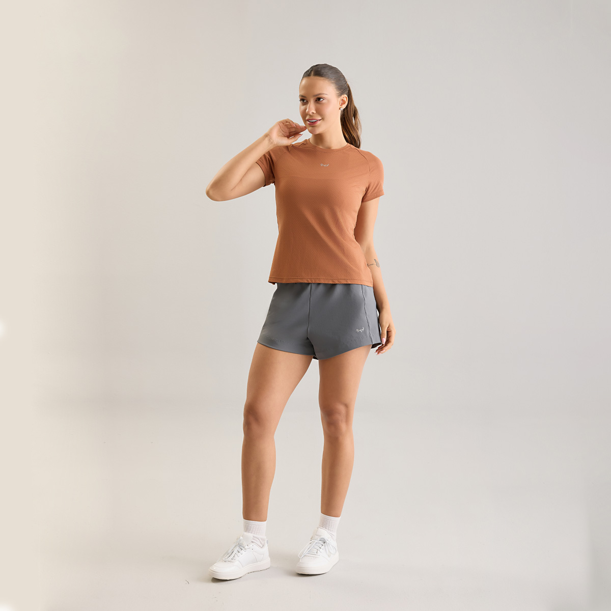 A T-shirt Double possui design de alta peformance que ajuda no desempenho esportivo. Sua modelagem levemente solta proporciona conforto durante o uso.