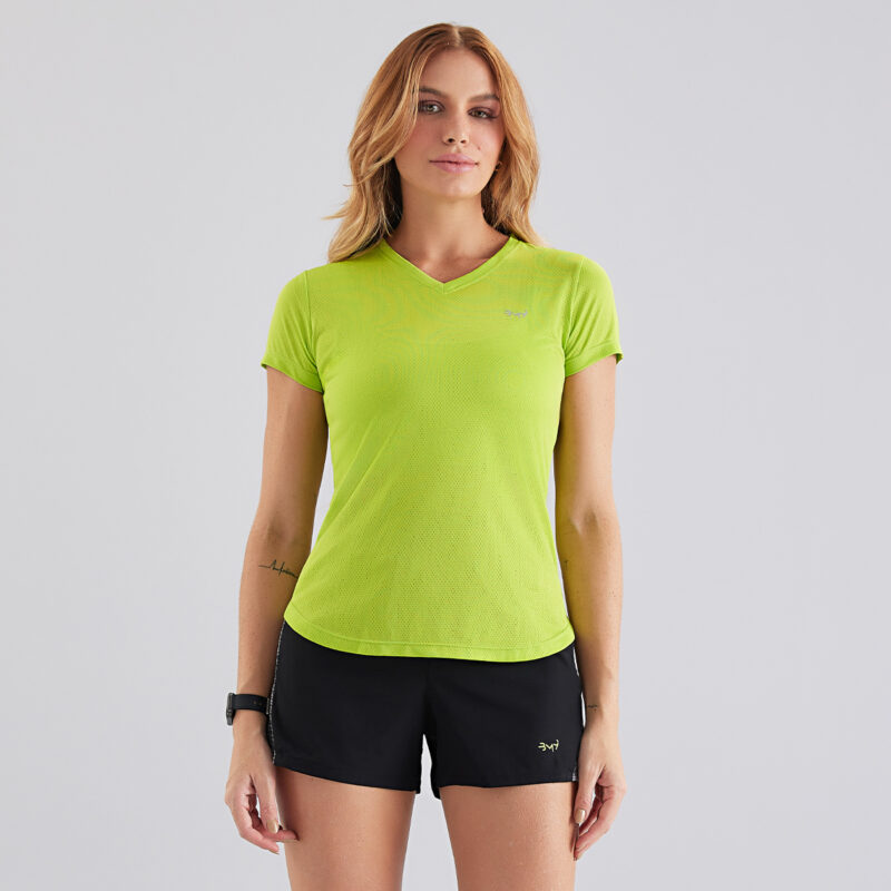 A T-Shirt Feminina 4221003, possui manga curta e gola V é desenvolvida em tecido de poliamida, super macio e leve, que transmite uma sensação de conforto ao vestir. Sua estrutura em microfuros promove respirabilidade e ventilação, permitindo que o calor escape do corpo. Ideal para exercícios como corrida, ciclismo, dança e atividades que ocasionam muita transpiração.